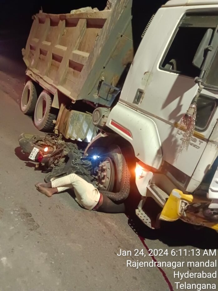 శంషాబాద్ లో రోడ్డు ప్రమాదం జరిగింది. కొత్వాల్ గూడ సర్వీస్ రోడ్డు లో మోటర్ సైకిల్ ను టిప్పర్ లారీ ఢీ కొట్టింది. ఘటనలో బైకిస్టు టిప్పర్ చక్రాల కింద నలిగిపోయాడు. మృతుడు తిమ్మాపూర్ కు చెందిన రాజ్ కుమార్ గా గుర్తించారు. మితిమీరిన వేగం, నిర్లక్ష్యం టిప్పర్ నడపడంతోనే ప్రమాదం జరిగింది. పోలీసులు కేసు నమోదు చేసి దర్యాప్తు చేస్తున్నారు.