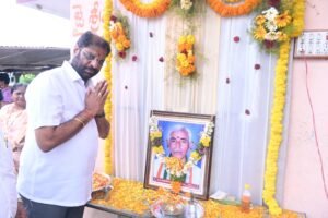 బీఆర్ఎస్ పార్లమెంటరీ పార్టీ డిప్యూటీ లీడర్, రాజ్యసభ సభ్యులు వద్దిరాజు రవిచంద్ర మున్నూరుకాపు సంఘం రాష్ట్ర ఉపాధ్యక్షులు ఆకుల గాంధీ,మాజీ కార్పొరేటర్, పార్టీ సీనియర్ నాయకుడు శీలంశెట్టి వీరభద్రం తదితర ప్రముఖులతో కలిసి స్వర్గీయ బండారు సూరయ్యకు ఘనంగా నివాళులర్పించారు.ఖమ్మం రూరల్ మండలం గుడిమళ్ల వాస్తవ్యులు సూరయ్య ఈనెల 20వతేదీన మృతి చెందడం జరిగింది.ఈ సందర్భంగా ఎంపీ రవిచంద్ర బుధవారం ఉదయం గాంధీ, వీరభద్రం తదితర ప్రముఖులతో కలిసి గుడిమళ్లలో సూరయ్య చిత్రపటానికి పూలుజల్లి శ్రద్ధాంజలి ఘటించి, ఆయన పవిత్ర ఆత్మకు శాంతి చేకూరాలని భగవంతున్ని ప్రార్థించారు.స్వర్గీయ సూరయ్య సతీమణి వెంకమ్మ,కుమారులు వెంకటేశ్వర్లు, కోటేశ్వరరావు, వెంకట్రామయ్య, ఉపేందర్,మనవడు ఉదయ్ కుమార్ తదితర కుటుంబ సభ్యులను ఎంపీ రవిచంద్ర, గాంధీ, వీరభద్రంలు పరామర్శించి, తమ ప్రగాఢ సానుభూతి తెలిపారు.
